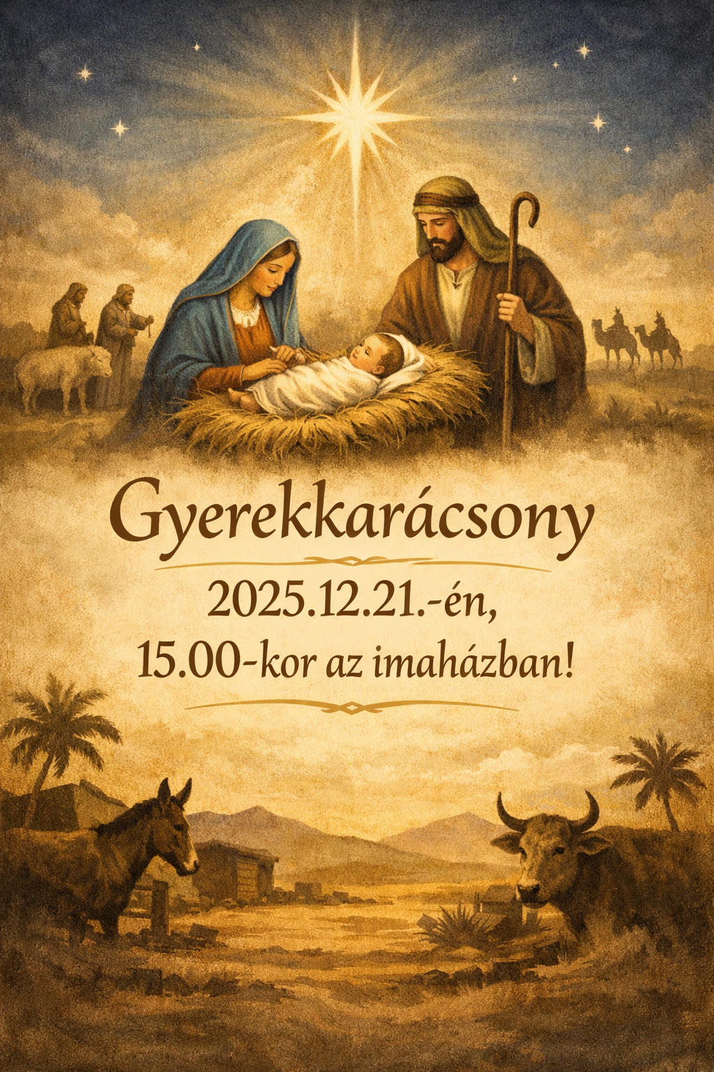 Szeretettel hívjuk és várjuk a gyermekeket és családokat 2025. december 21-én (vasárnap) 15:00 órára az imaházba, ahol gyerekkarácsonyi alkalmat tartunk.